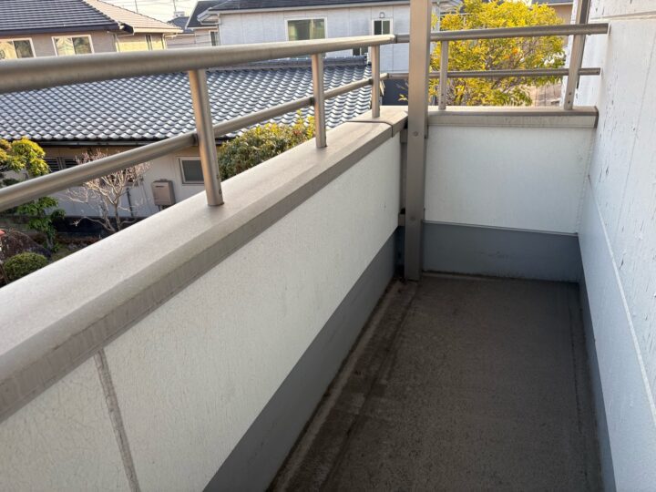 | 仕様 | 【外壁】超低汚染リファイン1000MF-R 色: 8074アイアンバーグ 9010クールホワイト 【軒樋・破風・鼻隠し・水切り】 色: 8075パイオニア 【軒天】 色: 9010クールホワイト 【ベランダ防水】 タフシールトップ#300 |
